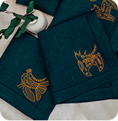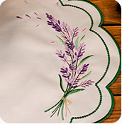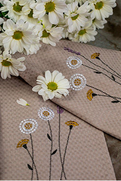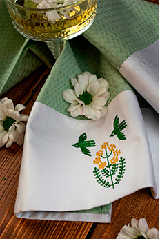 Позволяет придать изделиям уникальность и выразительность, осуществляем вышивку на скатертях, салфетках, дорожках на стол, постельном белье, махровых и вафельных полотенцах.